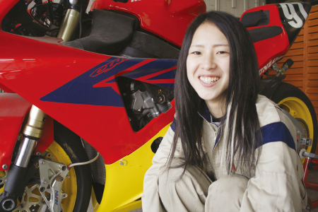 中村 礼奈さん - ネイキッドやアメリカンのバイクが好きで、将来はバイクの整備士になりたいと思っていました。JMCはバイク専門の学科がありバイクについてしっかり学べると思ったのと、体験入学で詳しく説明してもらい入学後の実際の授業を想像できたので、入学を決めました。長崎から大阪への引っ越しだったので最初は不安だらけでしたが、友達もでき、バイクについても車両実習などの授業を通してどんどん知ることができて楽しく過ごしています。将来は、男の人に負けないくらいカッコイイ整備士になります!!